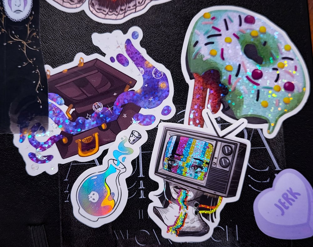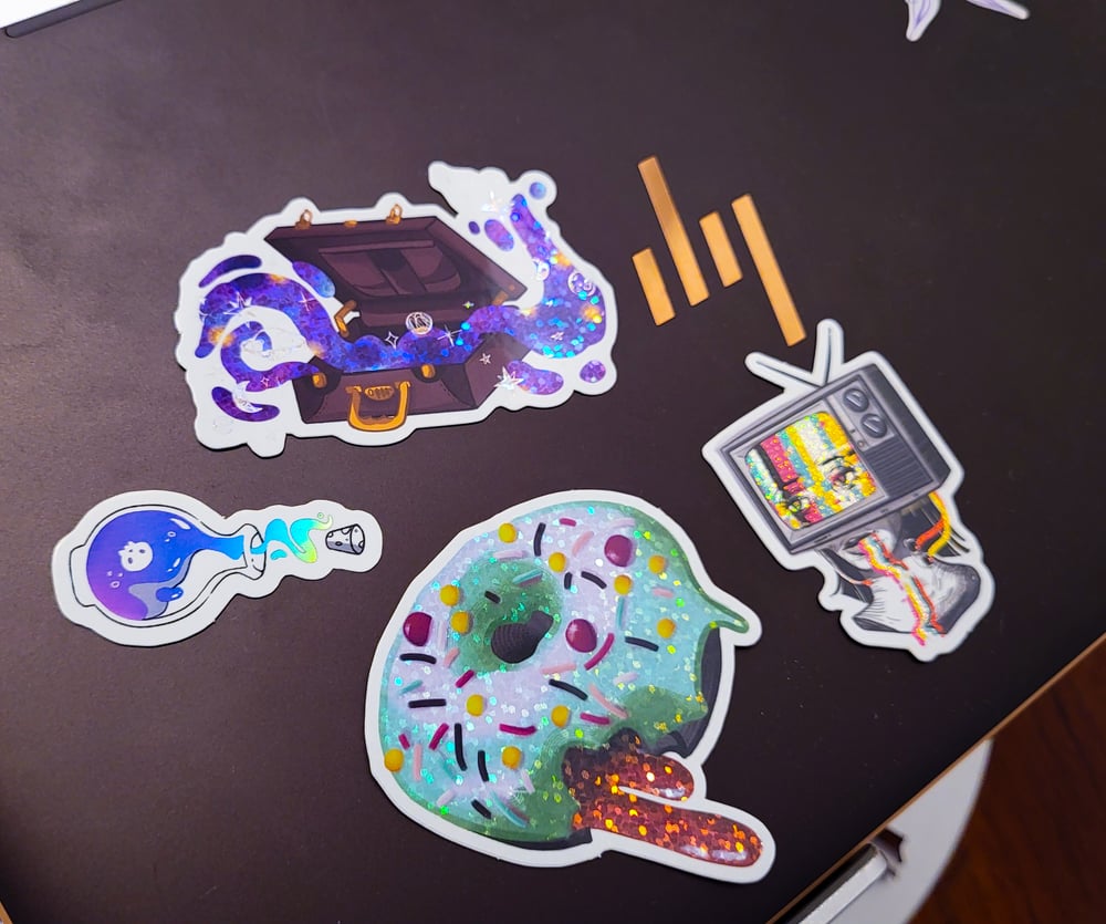 If you like bright colors, then I think you've landed in the right place. These are my collection of holographic and sparkly stickers. It's like gamer fuel but for the eyes.
