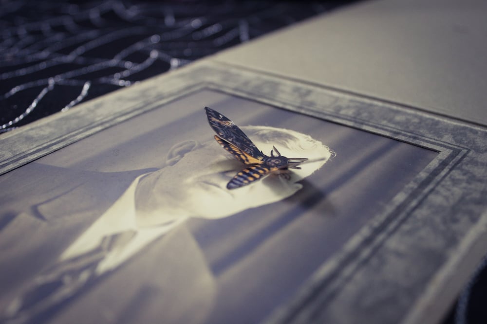 **Handcrafted using paper moths from Moth & Myth. I can neither confirm nor deny if these photos are haunted. No ill intent is meant toward this person or their family.**